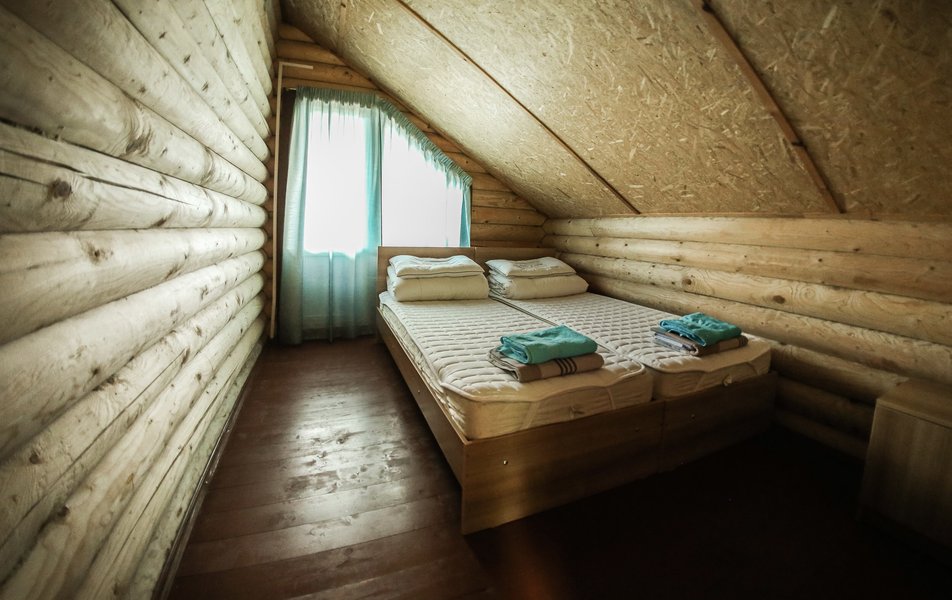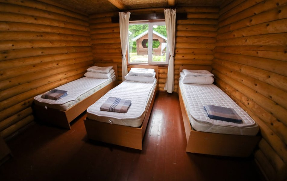В коттедже: диван раскладной, кровати односпальные /одна двуспальная кровать: в каждой спальне, кухонная мебель, прикроватные тумбочки, стол, стулья, мини-кухня, мини-холодильник, набор посуды, плита электрическая, телевизор, электрочайник