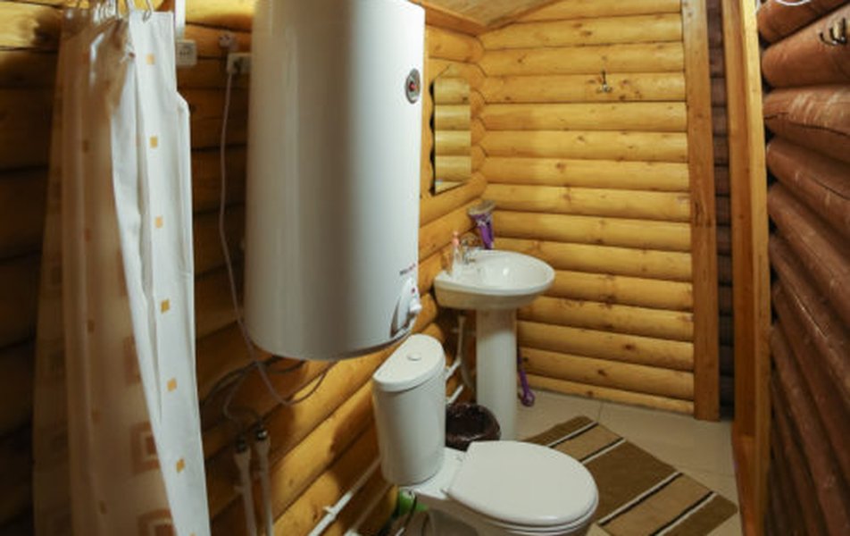 Санузел: душ, раковина, унитаз, тапочки, туалетные принадлежности