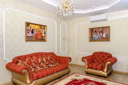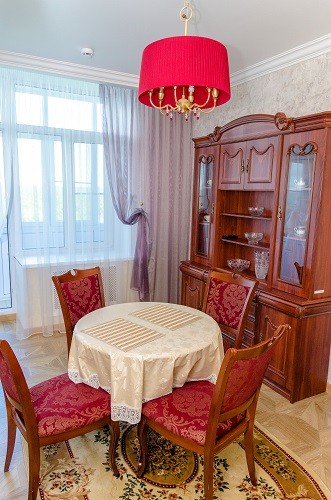 В номере: Гостинная: телефон, телевизор, DVD-проигрыватель, диван-кровать, стенка-горка. Спальная: двуспальная кровать, комод, столик прикроватный, телевизор. Гостинная-столовая: холодильник, телевизор, кухонный гарнитур, микроволновая печь, электрический чайник.