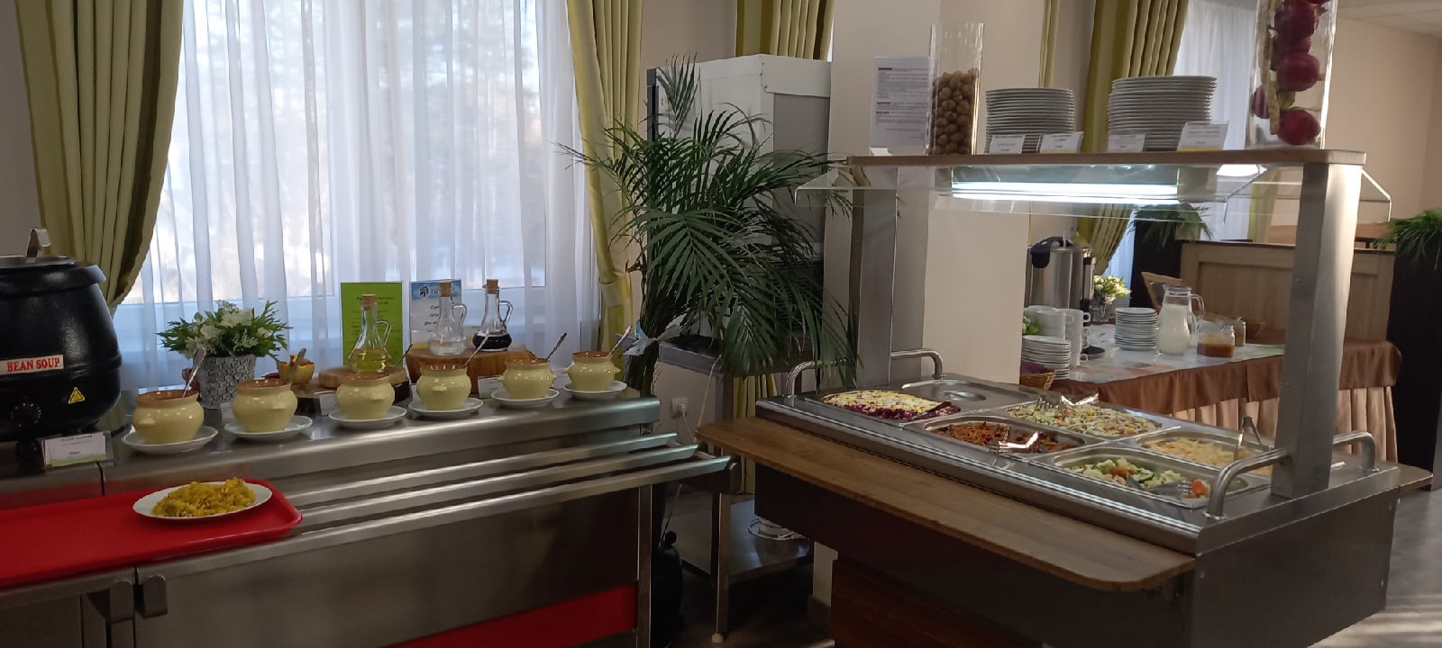 В столовой санатория-профилактория "Энергетик" предусмотрено 3-разовое лечебно-профилактическое питание для гостей. Питательный рацион оформлен специальной цветовой маркировкой, что позволяет гостям легко ориентироваться в разнообразных диетах. Те, кто приобрел путевку без питания, всегда могут расплатиться за завтраки, обеды или ужины на месте.