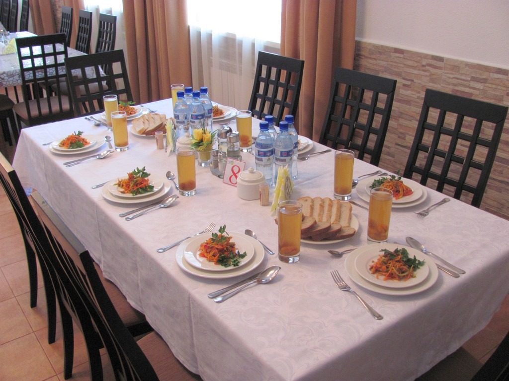 Питание в санатории четырехразовое. Разработано 10 дневное меню, в которое включен один день национальной Башкирской кухни, а для отдыхающих страдающих сахарным диабетом предусмотрено "Диабет" меню.