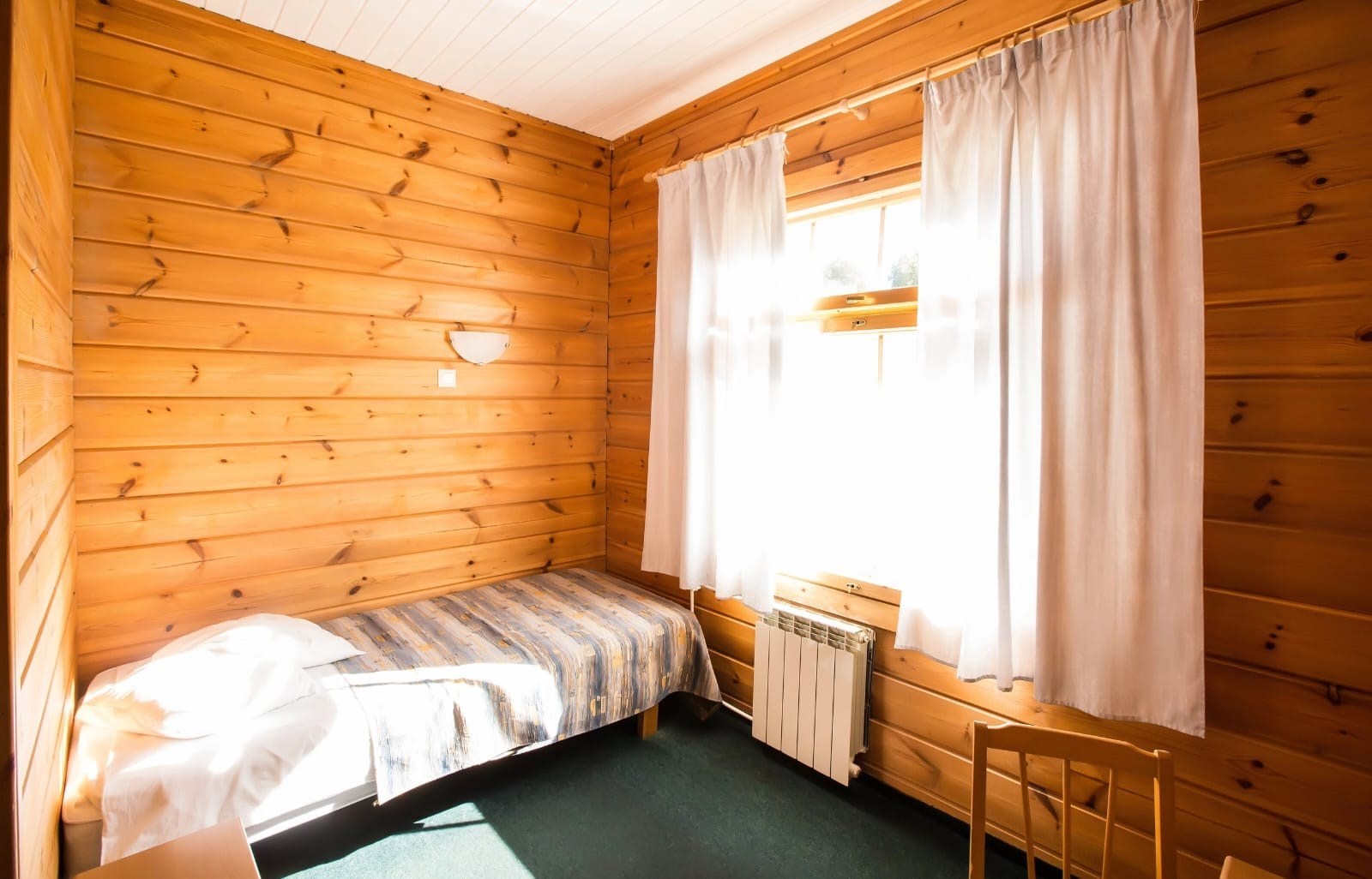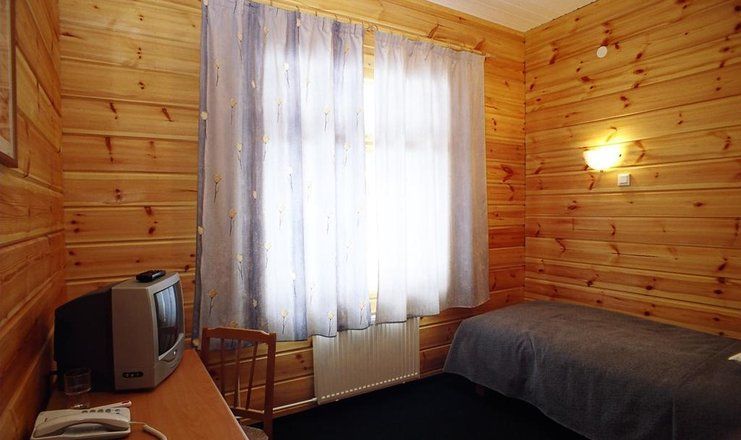 В номере: кровать односпальная, прикроватная тумбочка, стол, шкаф, телевизор, телефон