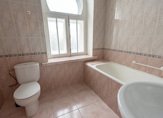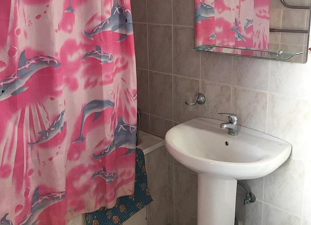 Санузел: ванна, унитаз, раковина, полотенца, гигиенические средства