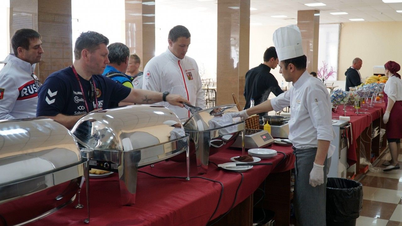В санатории «Каспий» (Дагестан) организовано трёхразовое питание по системе «шведский стол». Огромное разнообразие блюд не оставит равнодушным даже самого искушенного гурмана. В меню обязательно включены овощи и фрукты. У нас вы научитесь питаться сбалансированно и правильно, насыщая свой организм необходимыми витаминами и минералами