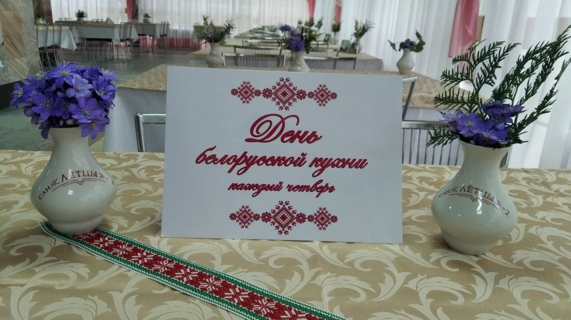 Каждый четверг в санатории «Лётцы» — день белорусской кухни. Это национальная кухня белорусов. Отличительной особенностью белорусской кухни является большое распространение блюд из картофеля, а также использование разнообразных колбас, овощей, круп, картофеля, грибов и свинины.