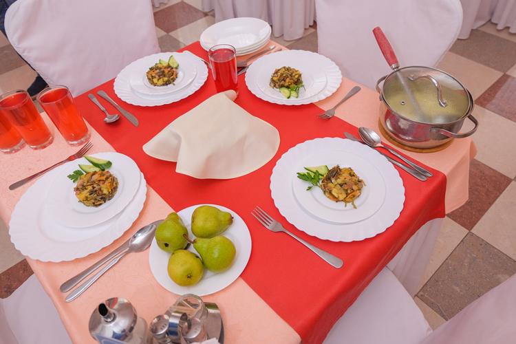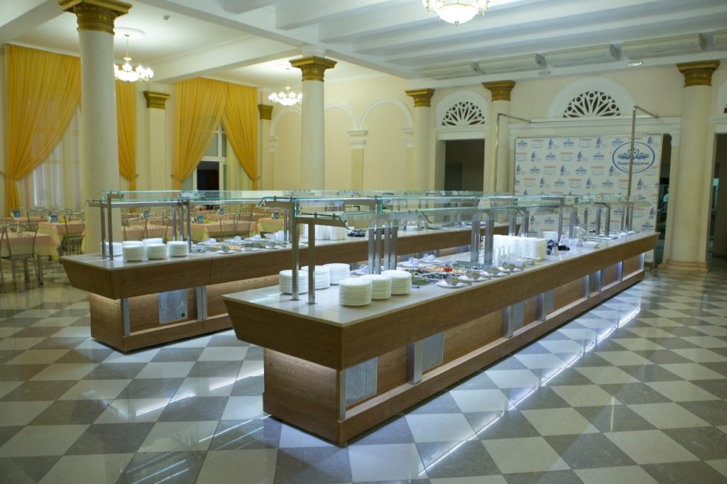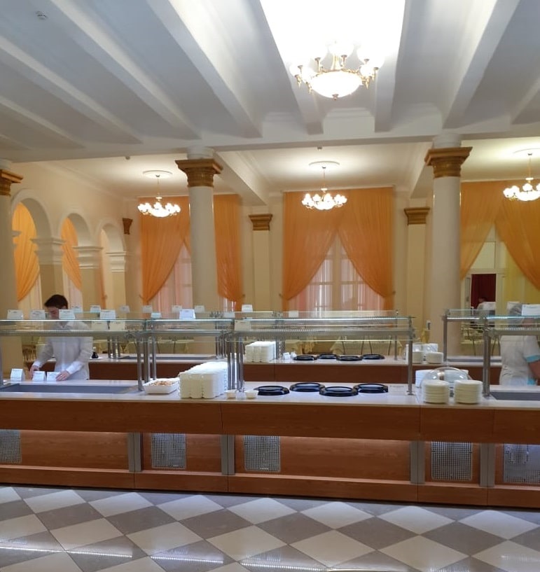 В санатории «Озеро Карачи» организовано два варианта питания: «шведский стол» и «меню-заказ». Приемы пиши проходят в уютной столовой на 600 посадочных мест, находящейся в главном корпусе санатория.