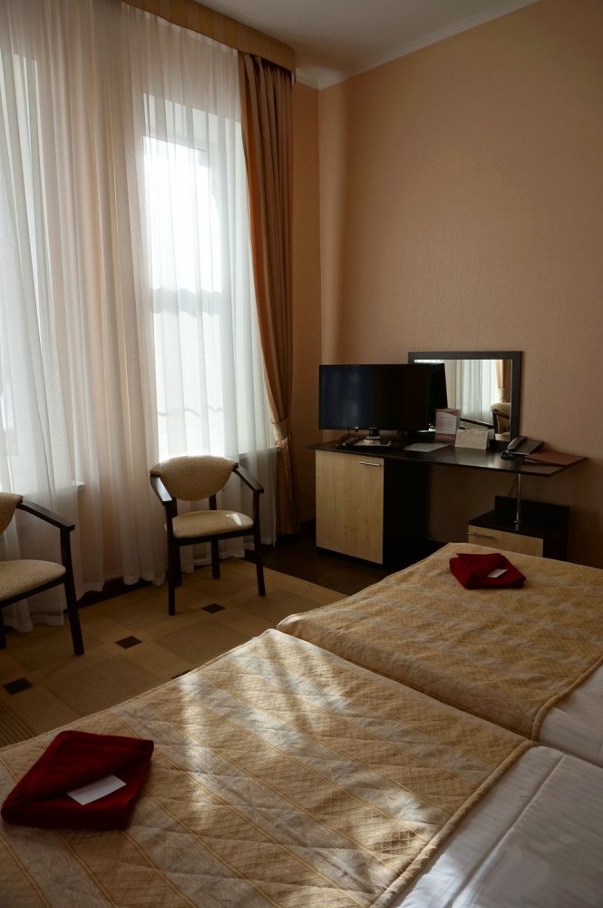 В номере: 2-е односпальные кровати или одна большая, холодильник, мини-бар, плоскоэкранный телевизор, мини-сейф, телефон, кондиционер.