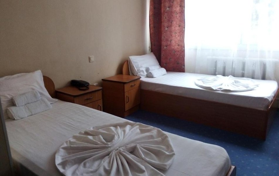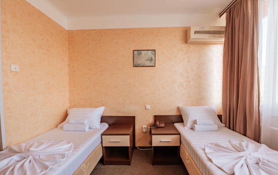 В номере: две 1,5 спальные или одна 2-ух спальная кровать, телевизор, кондиционер, холодильник, телефон, набор посуды, сейф.