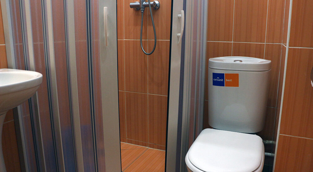 Санузел: душевая кабина, раковина, унитаз