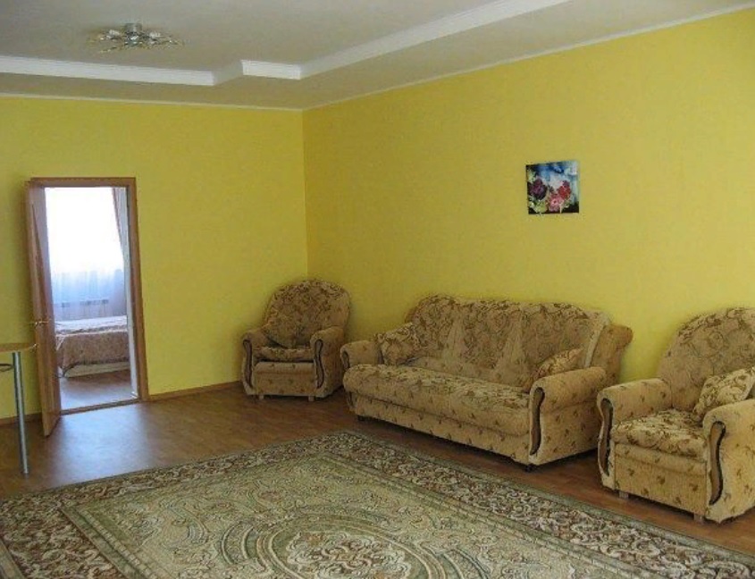 В номере: Двуспальная кровать, кофейный столик, платяной шкаф, телевизор, холодильник, Wi-Fi, фен, белые махровые халат и тапочки.