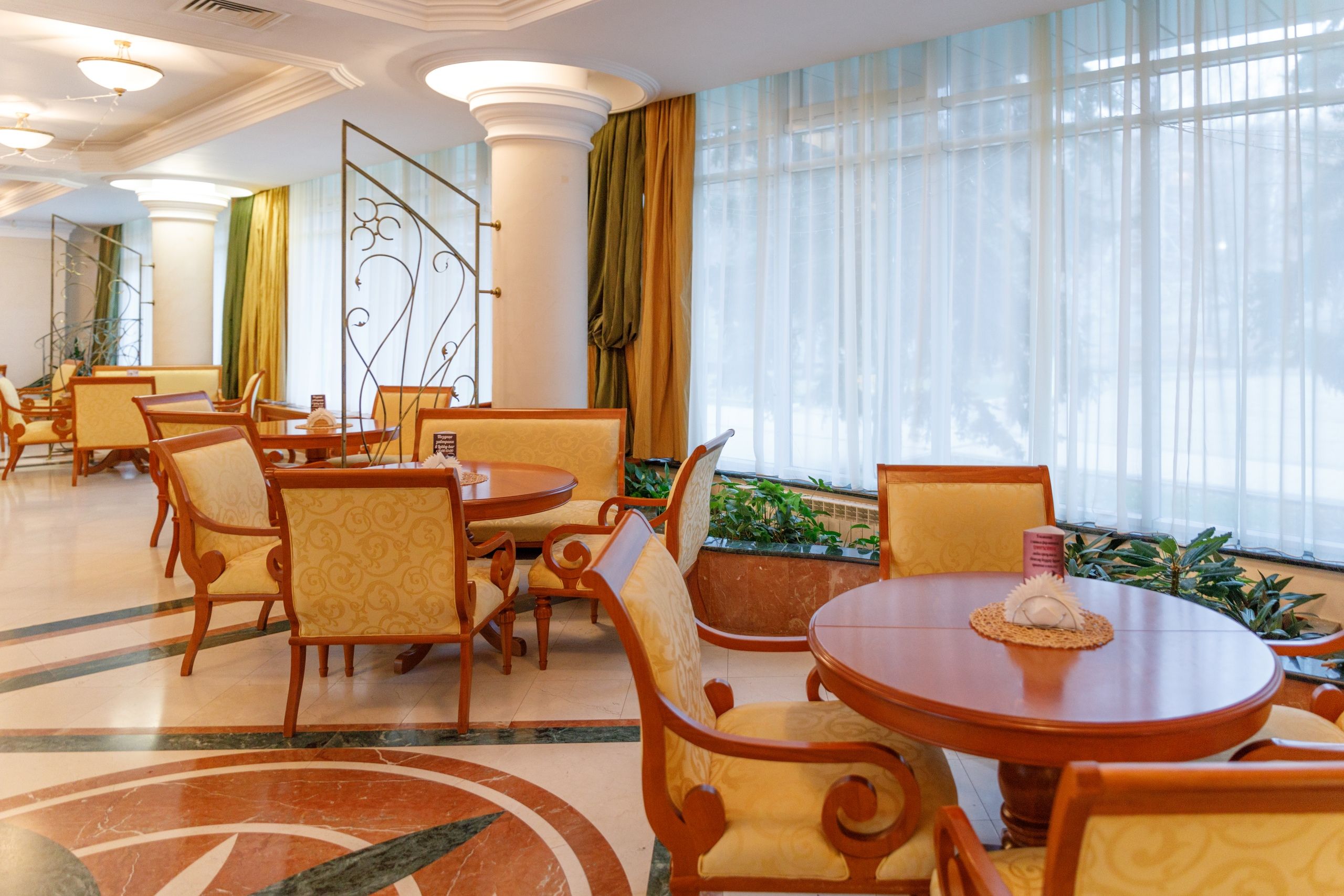 Лобби-бар находится первом этаже главного корпуса, здесь отдыхающие могут выпить чашечку ароматного кофе, чай, попробовать разнообразные десерты, алкогольные напитки.
